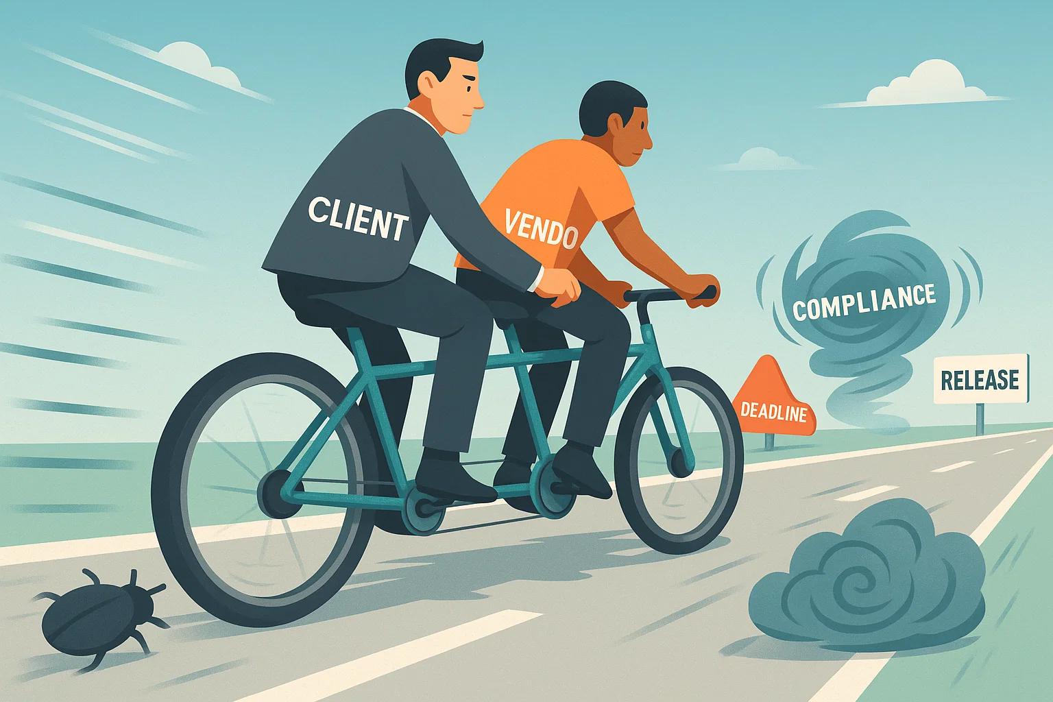 Time zone gaps• Responses delayed >24 hrs • <4 hrs overlap • Async updates ignored• Define overlap windows • Async-first rituals (Loom, Slack threads) • Clear handoff rulesDelivery manager (client-led) + vendorTier 1: PM/DM resolves in 24 hrs • Tier 2: Tech leads in 72 hrs • Tier 3: Steering committee review