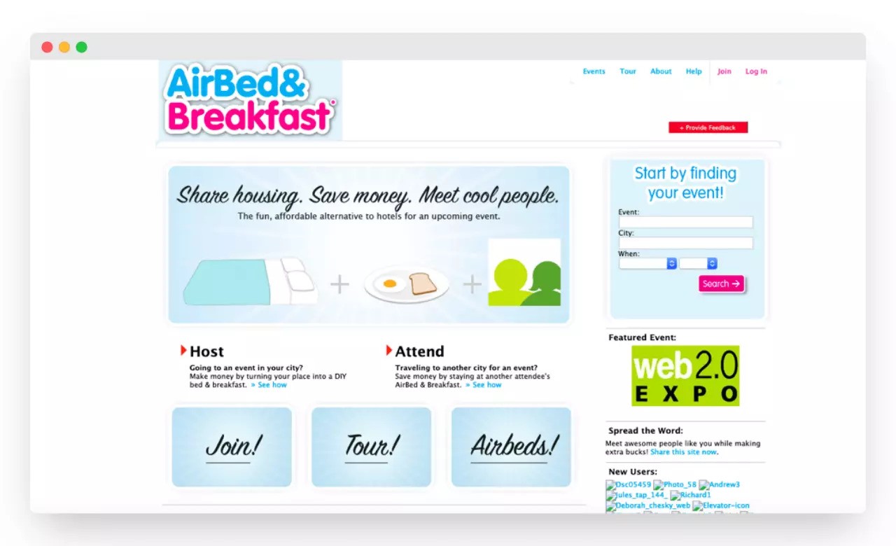 Here’s a screenshot of the AirBed & Breakfast page from 2008: