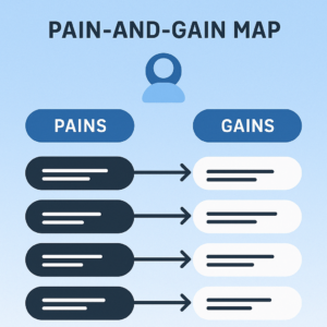 Also, a good practice is to map out the user journey to understand how you can design your software in a way that is user-friendly. Once you have worked through the user flow, you need to create a pain-and-gain map. This allows you to identify all the user’s pain points and the benefits the user would receive from addressing each one. We recommend organizing the pain-and-gain map as a diagram.